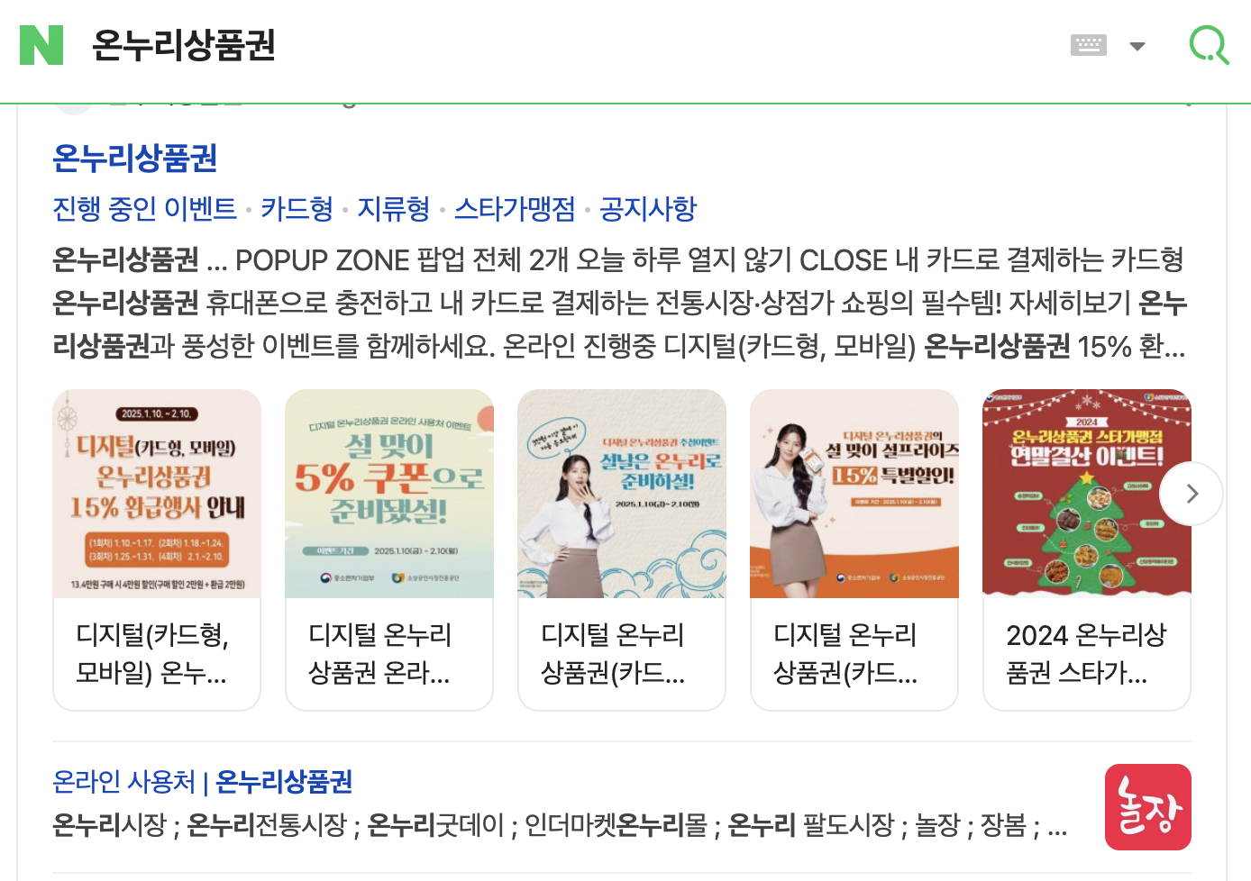 먼저 네이버에서 온누리상품권을 검색해주세요