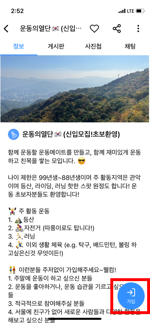 운동, 등산 등 동호회 가입하는 방법 끝!