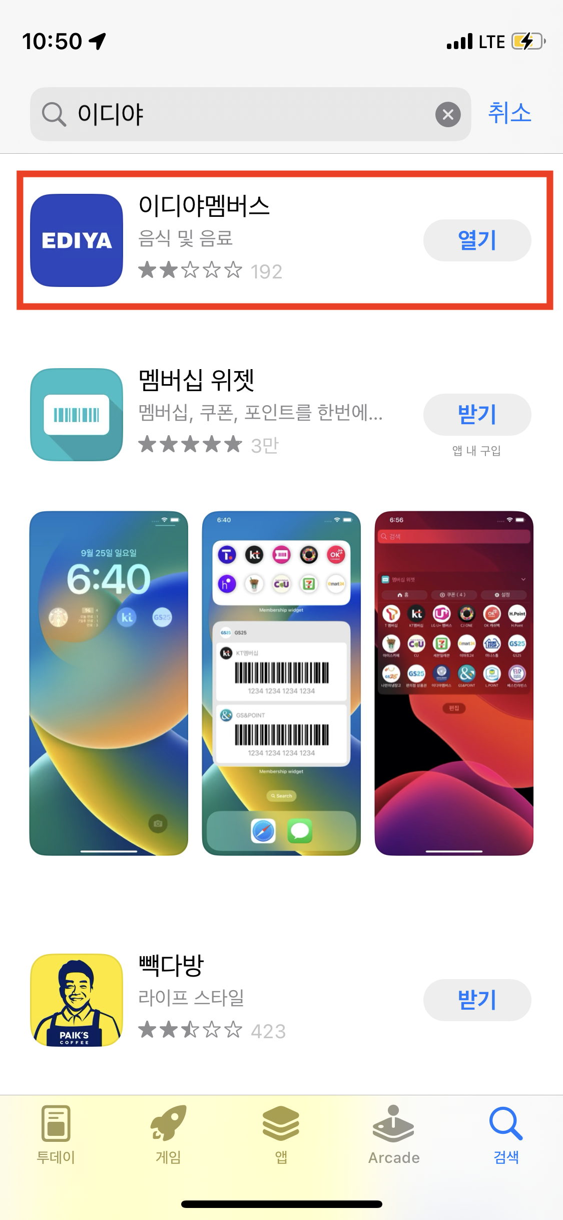 먼저 이디야앱을 다운로드해주시거나 업데이트해주세요.
