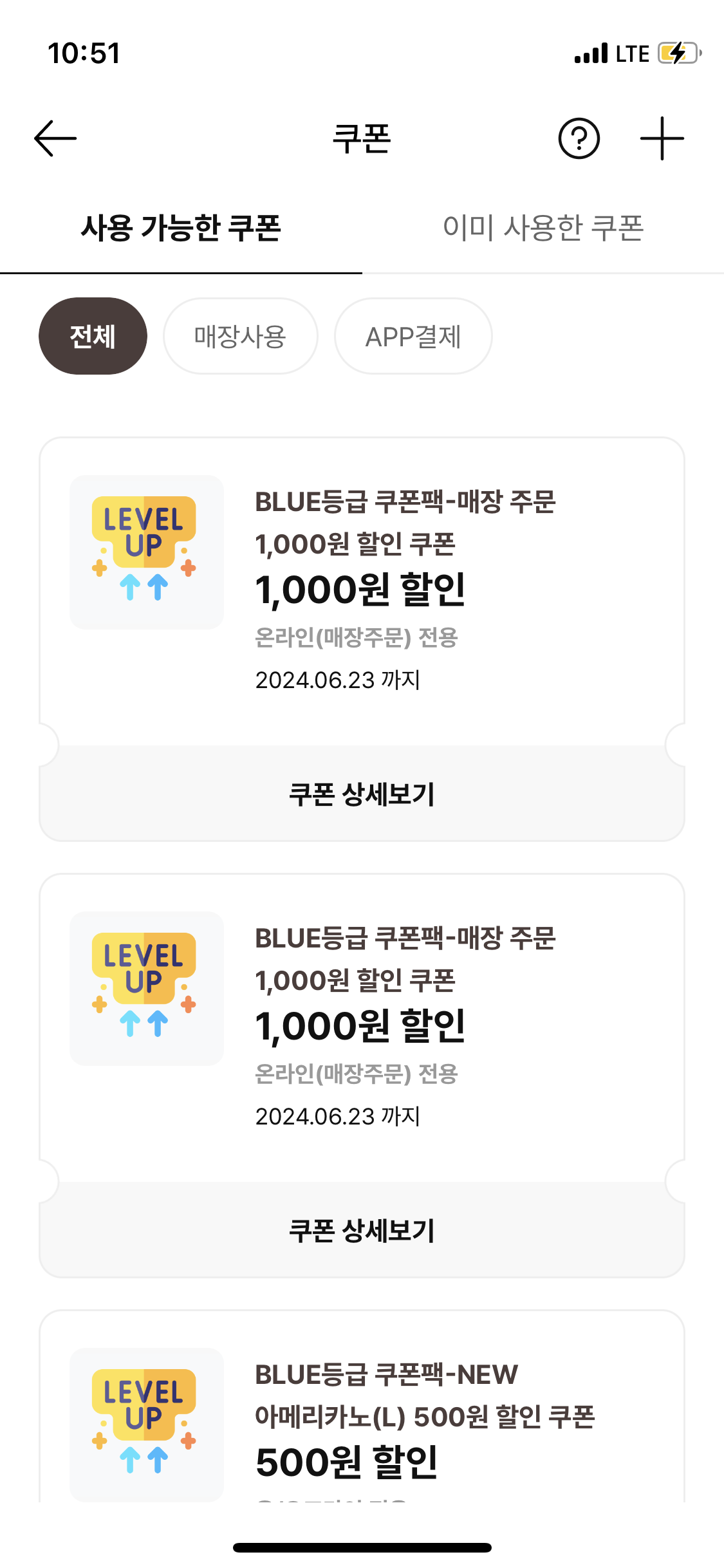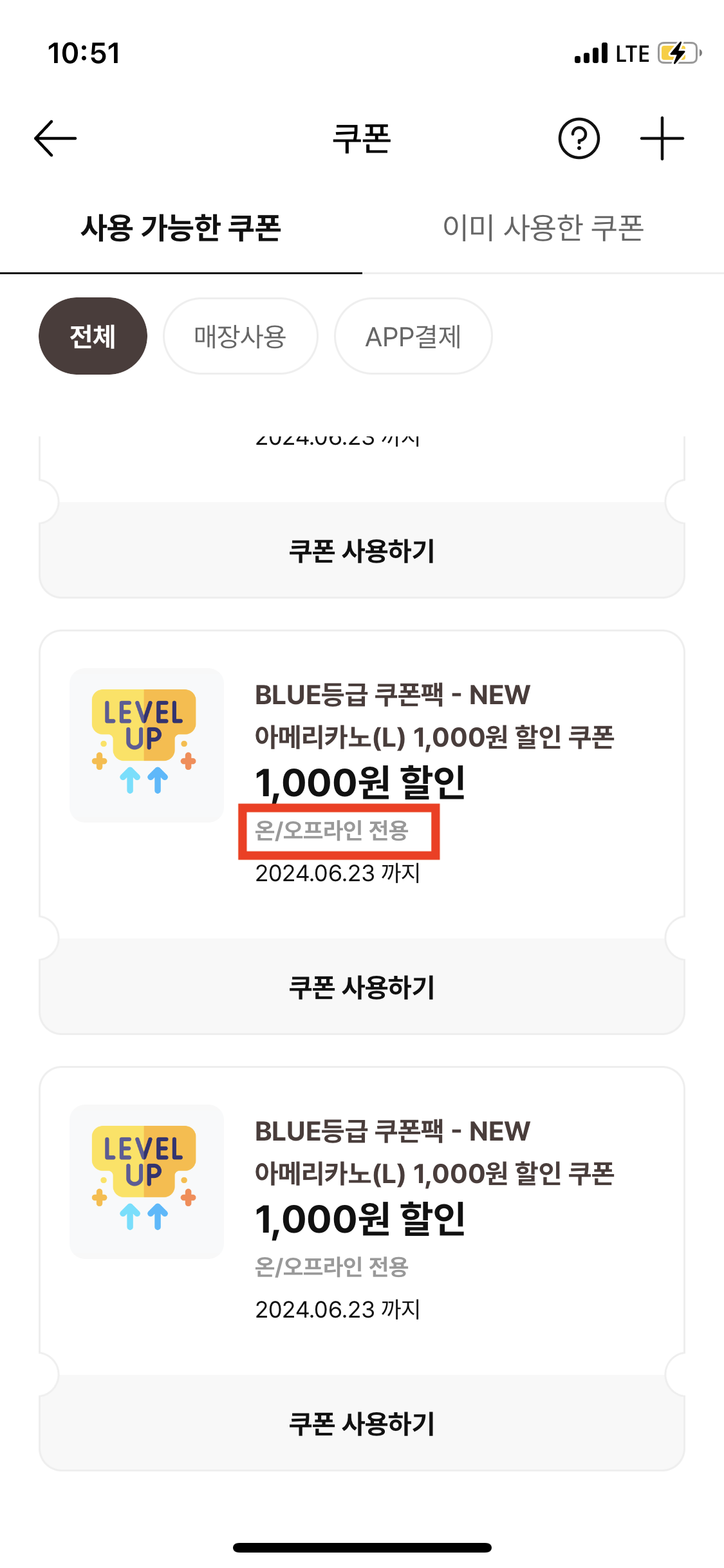 그러면 할인쿠폰이 있는데 여기서 온라인(매장주문) 전용은