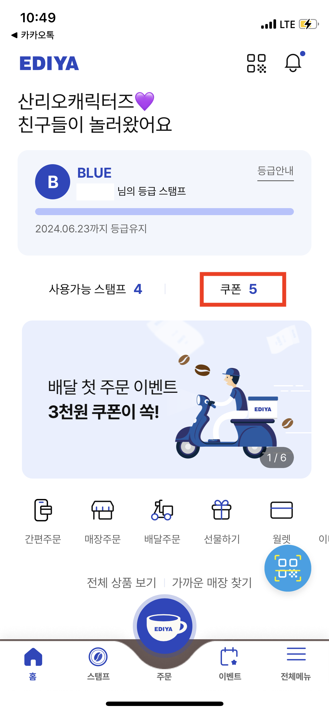 이디야 신규앱 업데이트 기념 쿠폰 지급 끝!