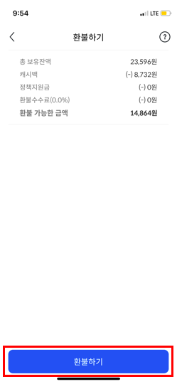 이후 밑에 보이시는 [환불하기]를 클릭해주세요.