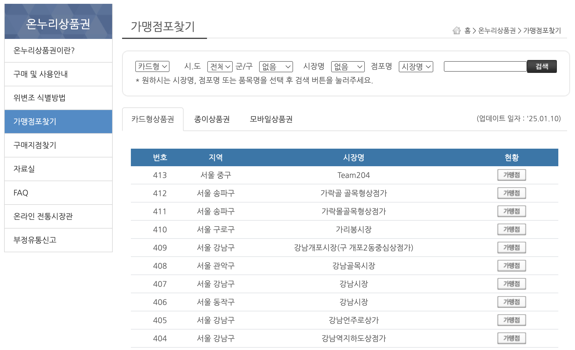 1단계를 끝내셨다면 아래화면 처럼 가맹점포찾기가 나오는데요.