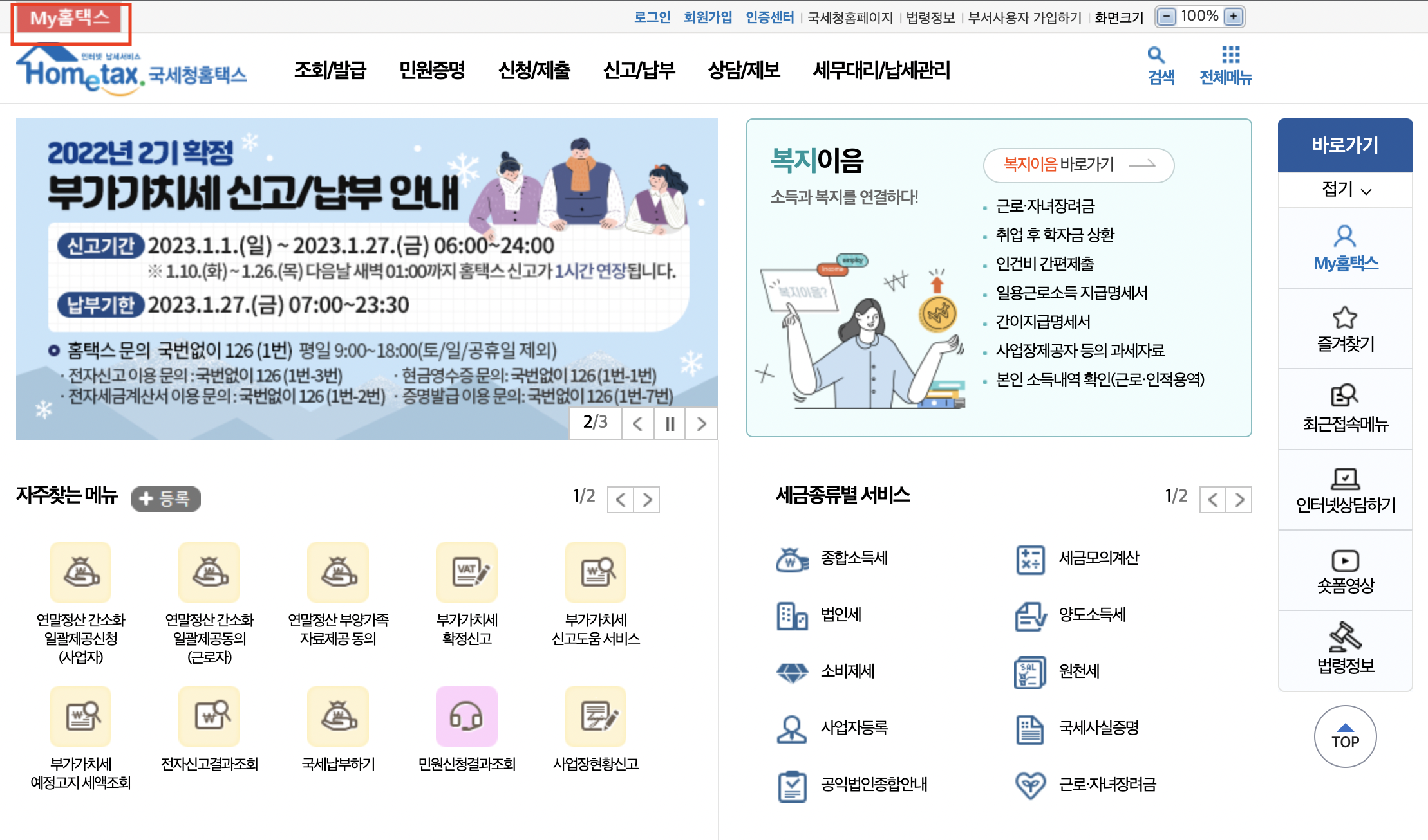 My 홈택스에 오셨다면