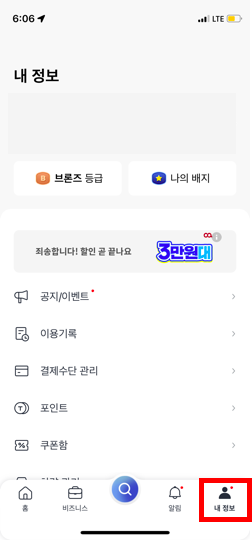 먼저 [정보]로 들어가서 [결제수단 관리]으로 가주세요.
