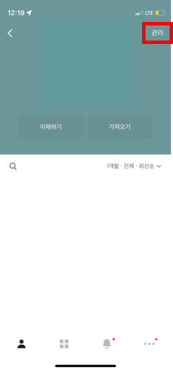 빨간색 네모칸을 누르면 두 번째 사진이 나오는데 오른쪽 위에 있는 [관리]를 눌러주세요.