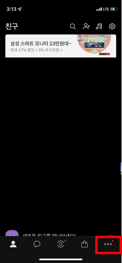 먼저 카카오톡에서 점 세개를 눌러주세요.