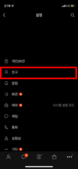 [친구] 카테고리까지 들어오셨다면 [차단친구 관리]를 눌러주세요.
