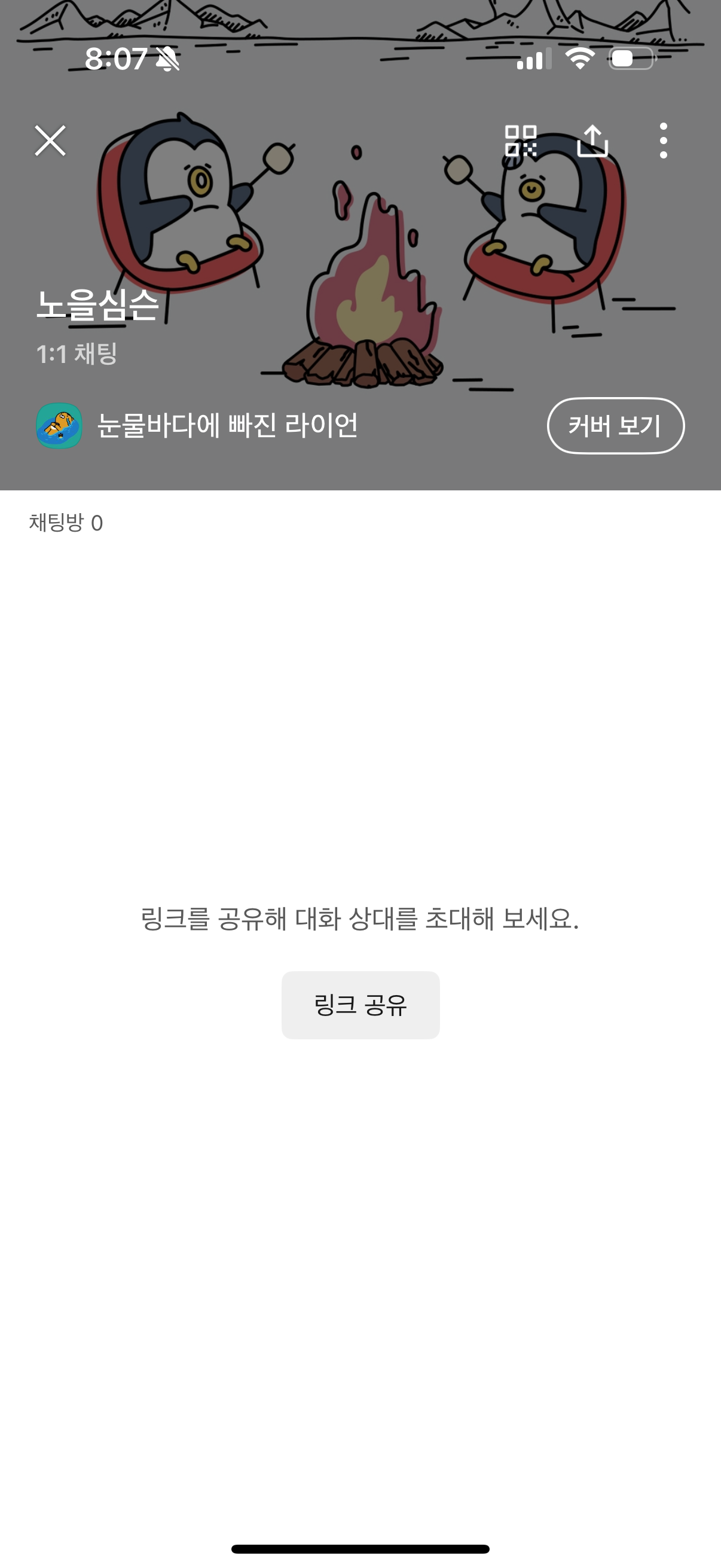 오픈채팅 메뉴로 들어가서, 상대방과 1:1 채팅방을 새로 만들어 보세요.