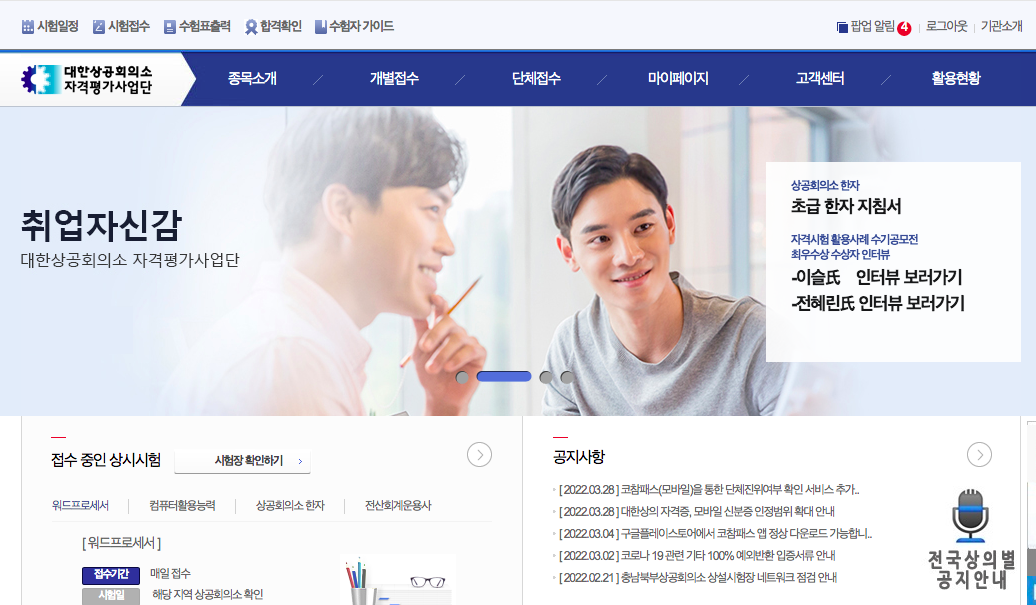 대한상공회의소 자격평가사업단으로 들어가 주세요.