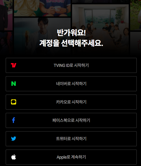 이후 티빙으로 들어가서 [네이버로 시작하기]를 눌러주시면