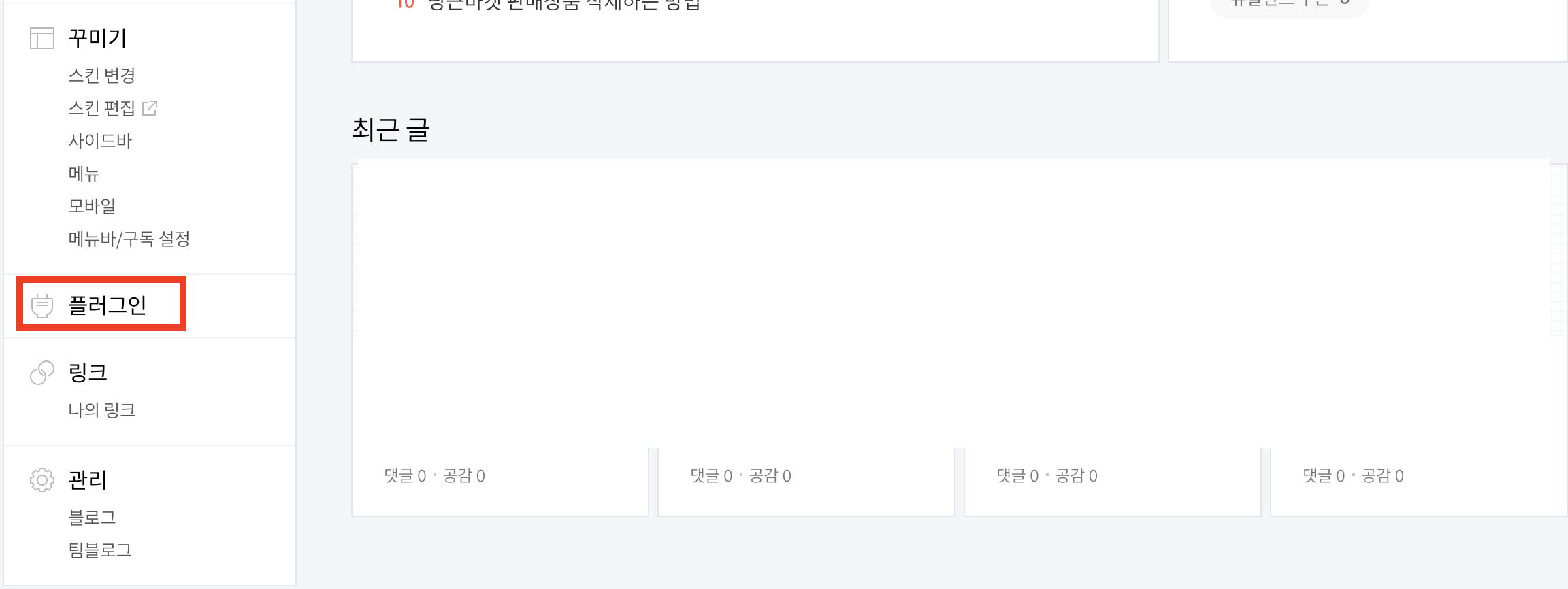 왼쪽 메뉴바에 [플러그인]이 나오는데 클릭해주세요.