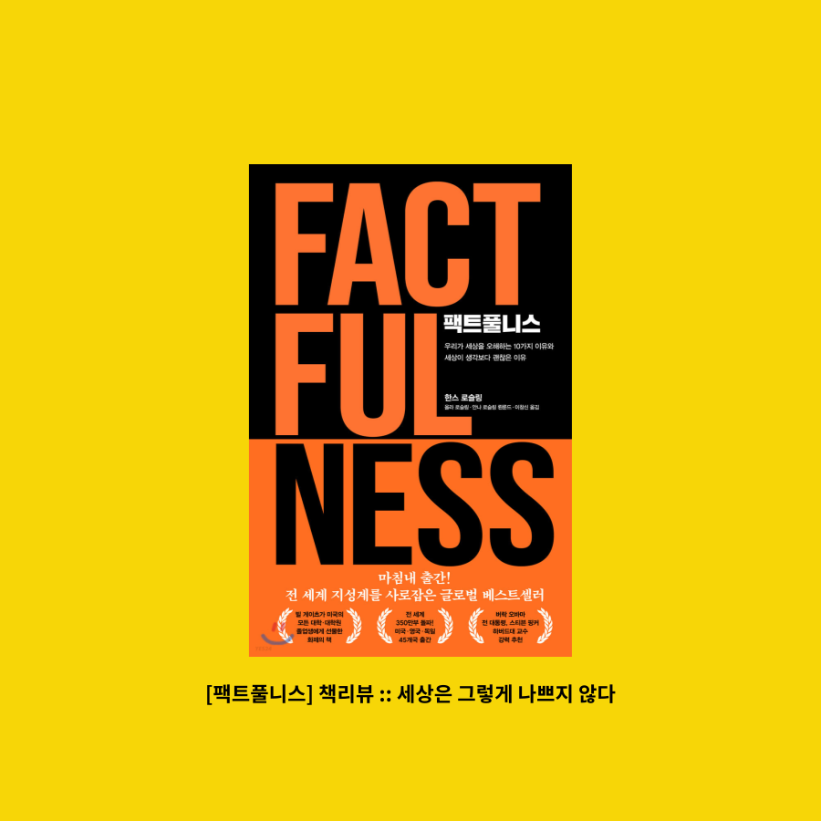 사실 나는 사람들이 나에게 책 추천을 물어보면 <팩트풀니스> 이 책을 추천한다. 쪽수나 내용이 처음 접하긴 쉽지 않지만 참고 다 읽으면 그만큼 뿌듯하고 지식이 쌓이는 느낌이 들기 때문이다. 지금 어떤 책을 읽을까 고민하는 분, 인문학 책을 좋아하시는 분, 세상을 바라보는 색다른 시각을 배우고 싶으신 분들에게 추천한다.