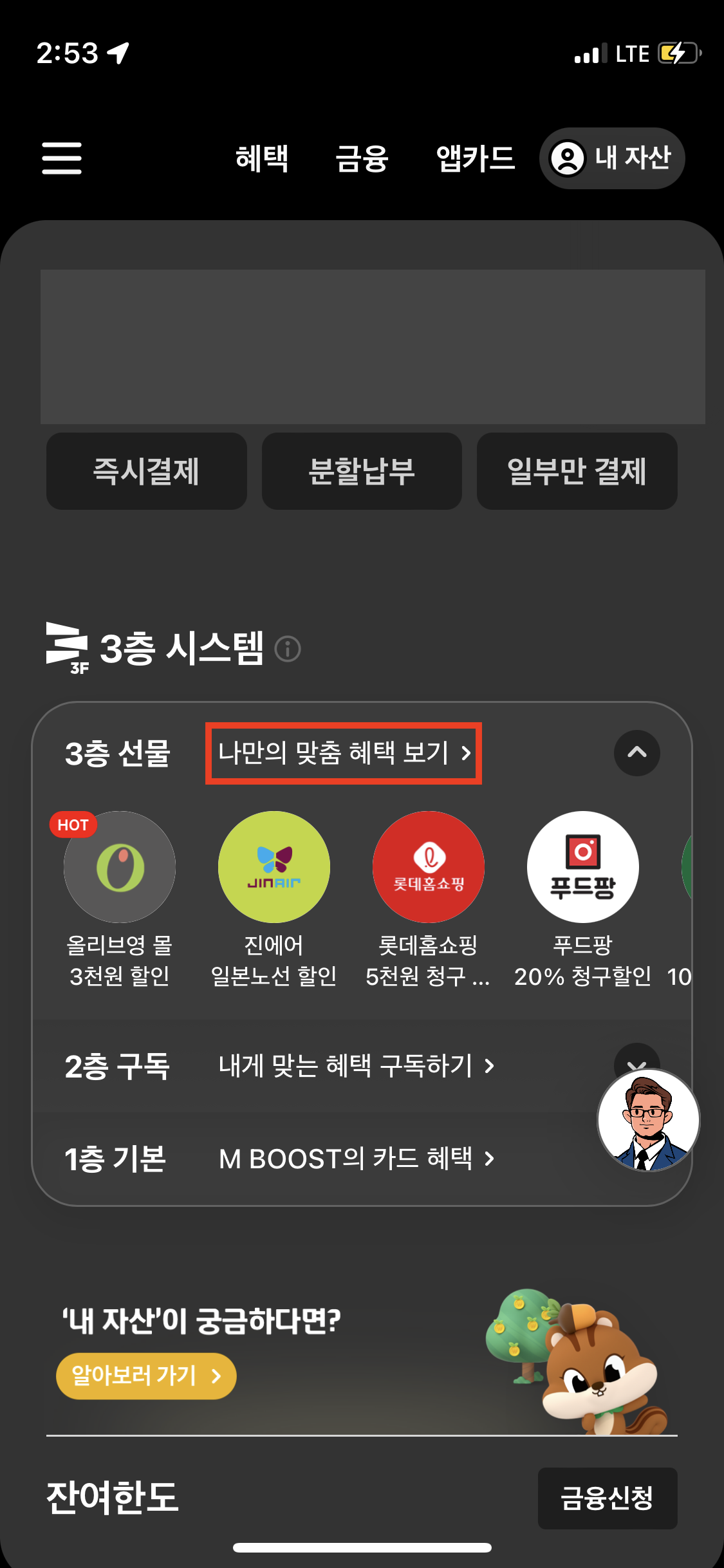 그러면 두 번째 사진처럼 나오는데 [3층 선물] - [나만의 맞춤 혜택 보기]를 클릭하신 후,