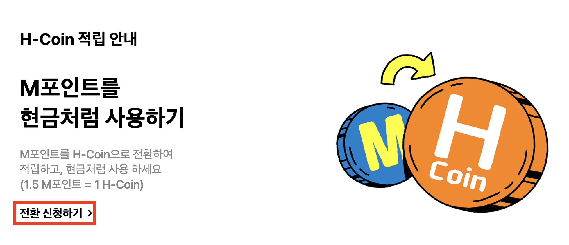 이때 비율은 1.5(포인트) = 1(h-coin)입니다.