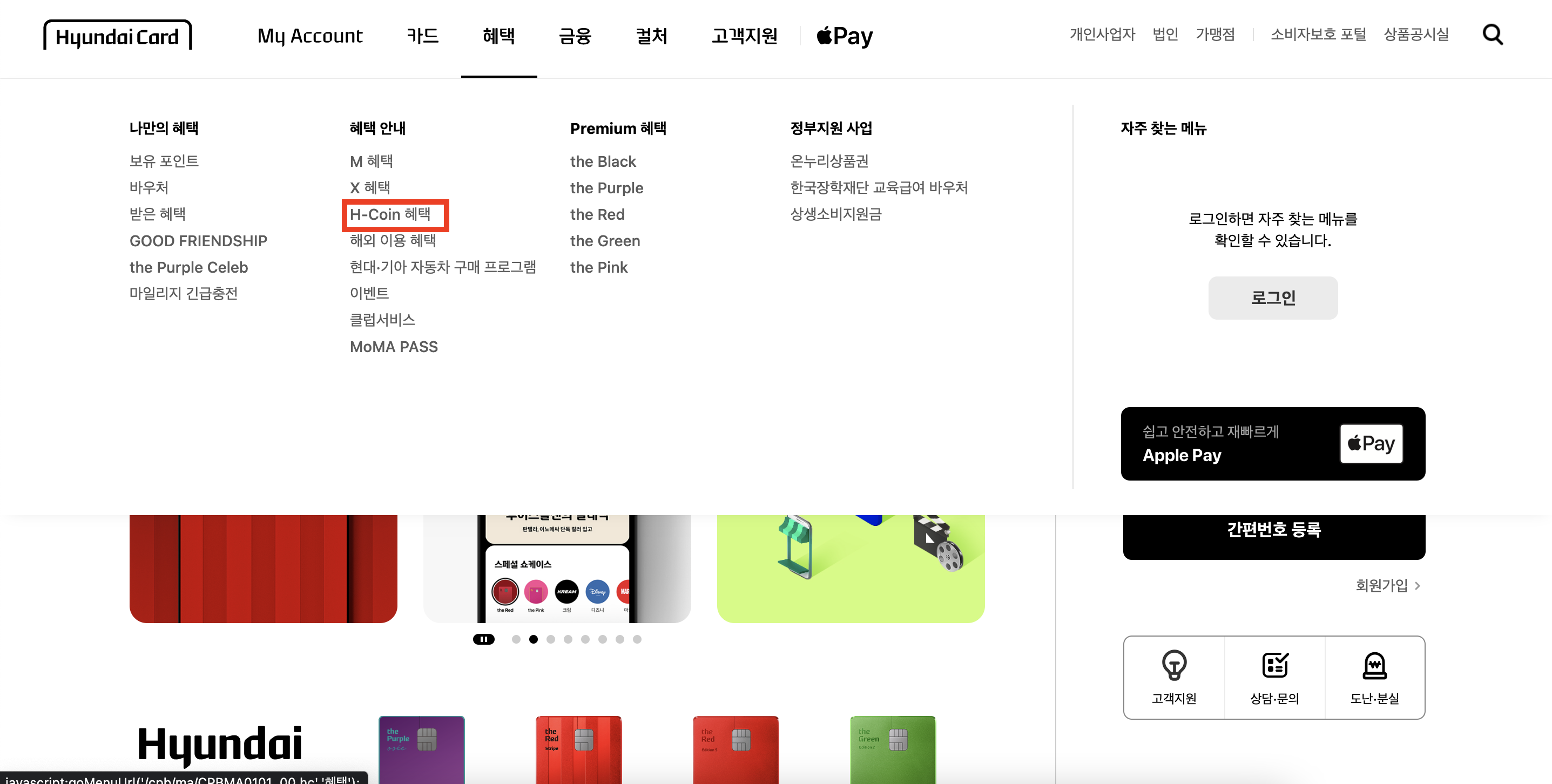 PC에서 현대카드 홈페이지를 들어가 주신 후,