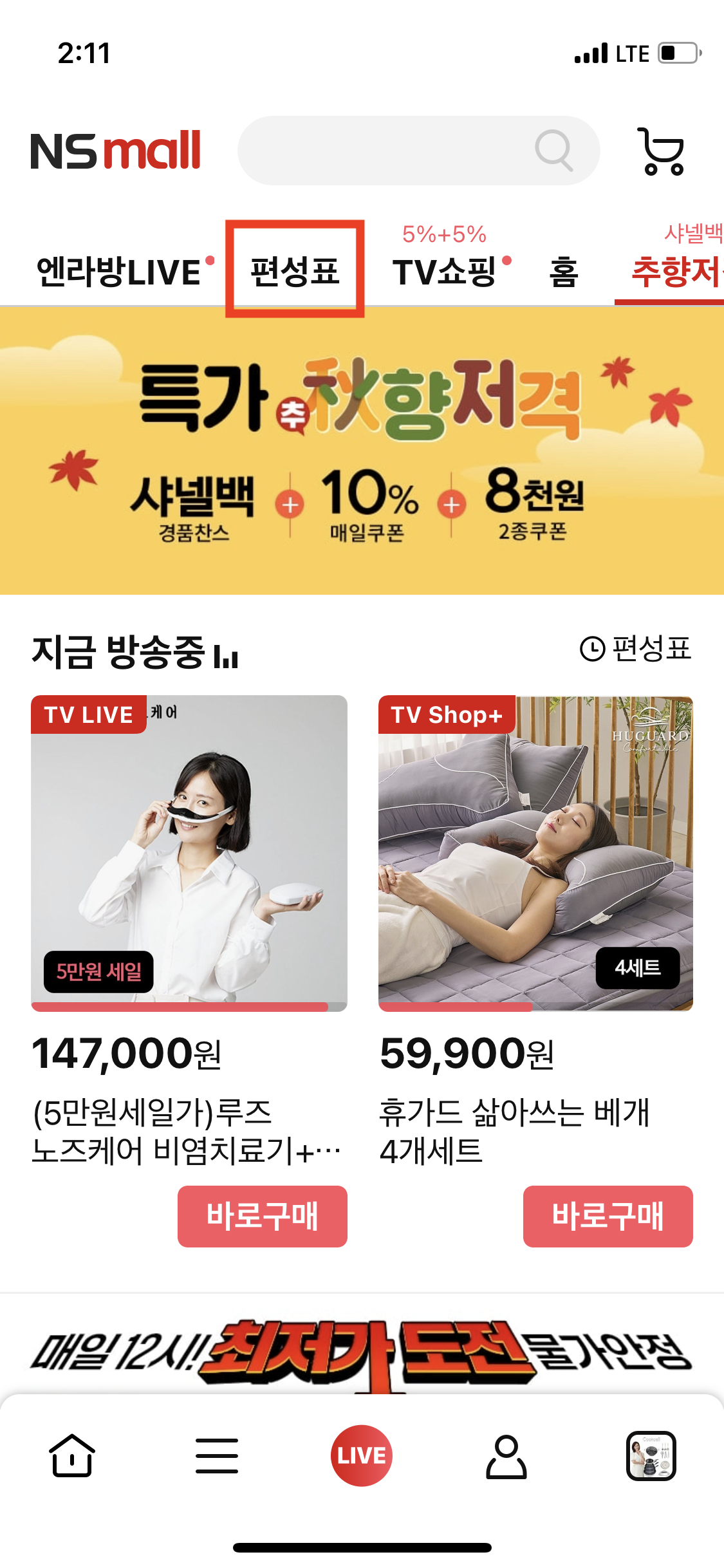 2단계 NS홈쇼핑 편성표 확인하는 방법